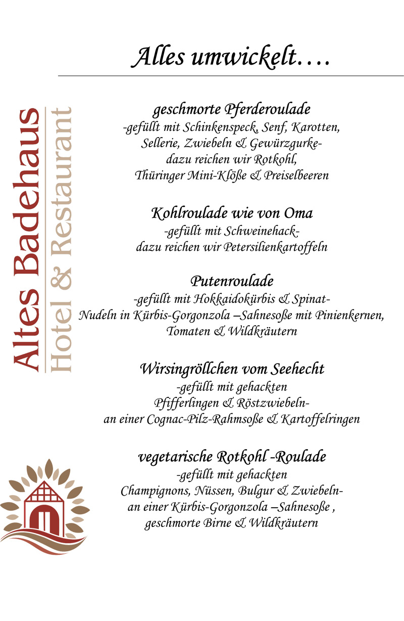 Verschenken Sie einen Gutschein für ein unvergessliches Dinner im charmanten Ambiente des Alten Badehauses. Ein Erlebnis, das in Erinnerung bleibt.